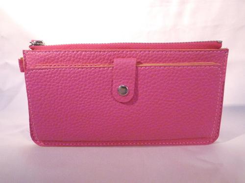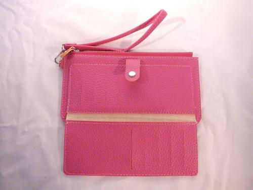 キュートなピンク色のストラップ付き長財布です。カードもたっぷりはいります。