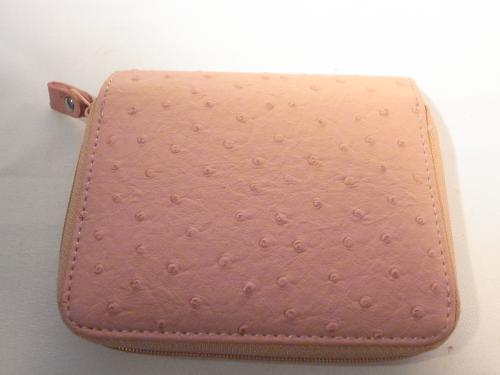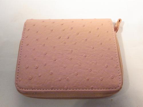 淡く優しい色合いの中にも気品溢れるピンクベージュのオーストリッチ風ラウンドファスナー型小銭入れです。マチも広く、使い勝手も便利です。