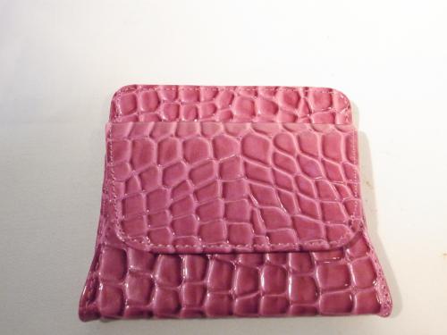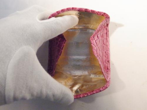 キュートなピンク色でも高級感を感じる、クロコダイル風コインケースです。まちが広いので、小銭がとても探しやすく便利です。