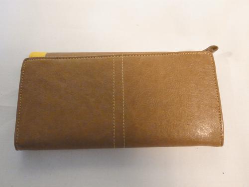オシャレでキュートな配色、キャメル×イエローのバイカラー。小銭・お札・カードもたっぷり収納できます。