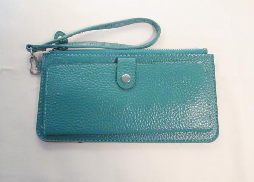 鮮やかなターコイズブルーのストラップ付き長財布です。カードもたっぷりはいります。