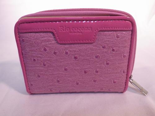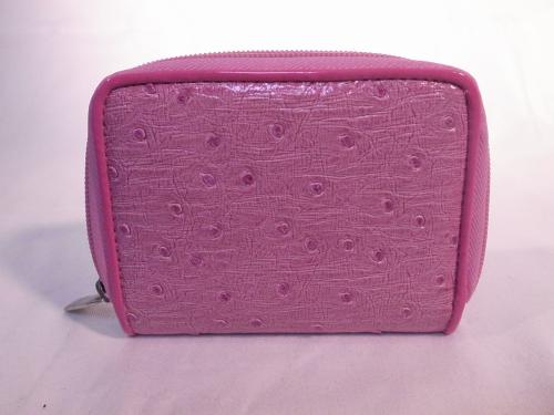 キュートなピンク色の、ラウンドファスナー財布です。気品溢れるオーストリッチ風!お札、小銭、カード類も十分収納可能です。
