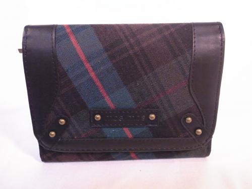 落ち着いたチェック柄の二つ折り財布です。男性が使っても素敵なチェック柄です。