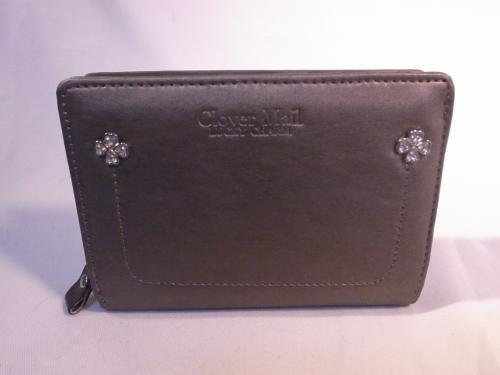 シックな深みのあるブラウンに、サイドに付いたお花型ラインストーンがキラキラ輝く、落ち着きの中にかわいさのある折り二つ折り財布です。収納力も抜群!