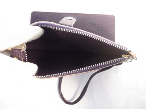 シックで落ち着いた、ダークブラウン色のストラップ付き長財布です。カードもたっぷりはいります。