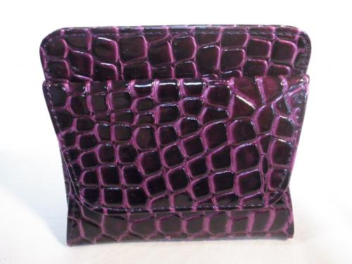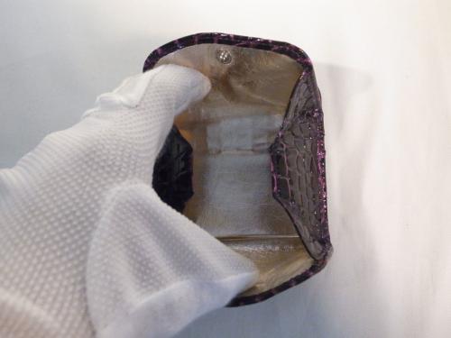 クールで妖艶なバイオレット色!高級感を感じる、クロコダイル風コインケースです。まちが広いので、小銭がとても探しやすく便利です。