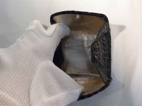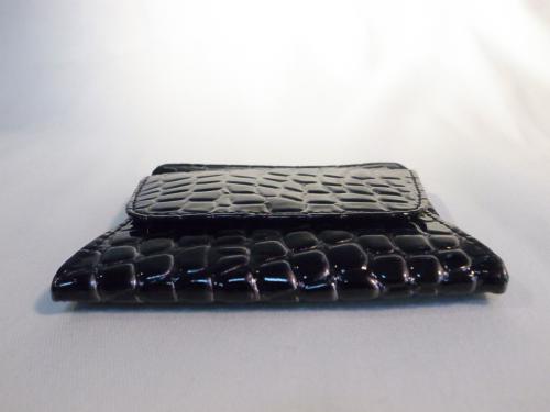 シックで品のあるブラック色の、クロコダイル風コインケース!まちが広いので、小銭がとても探しやすく便利です。