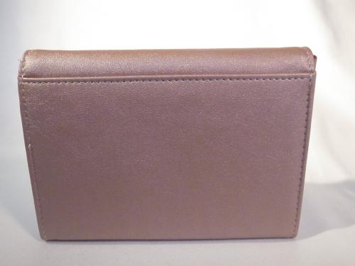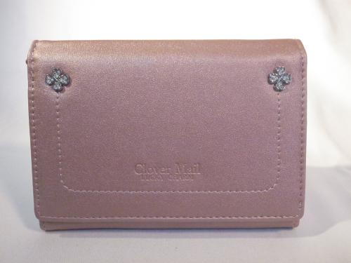 サイドに付いたお花型ラインストーンがキラキラ輝く、とてもキュートなシャンパンピンク色のラ二つ折り財布です。収納力も抜群です。