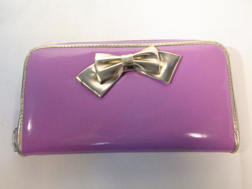 クールなパープルにゴージャスなゴールドリボンのかっこかわいい長財布!使いやすいラウンドファスナータイプで、収納力も抜群です。