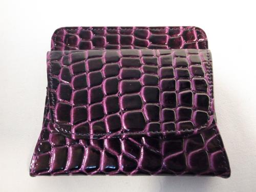 クールで妖艶なバイオレット色!高級感を感じる、クロコダイル風コインケースです。まちが広いので、小銭がとても探しやすく便利です。