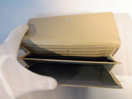 クールでオシャレなエナメル風、パープル色の長財布です。オシャレなだけでなく、収納力も抜群です!