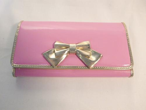 大きなゴールドのリボンがアクセントとなり、女性にはたまらないとってもキュートな長財布です。かわいいだけじゃなく、収納力も抜群です。
