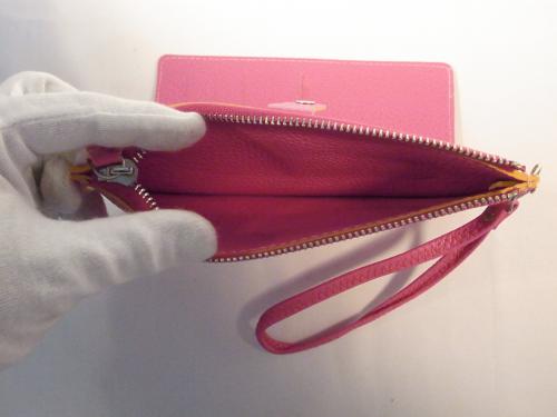 キュートなピンク色のストラップ付き長財布です。カードもたっぷりはいります。