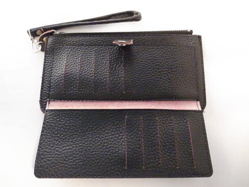 汚れも目立たず飽きもこない、定番人気色ブラック色のストラップ付き長財布です。カードもたっぷりはいります。